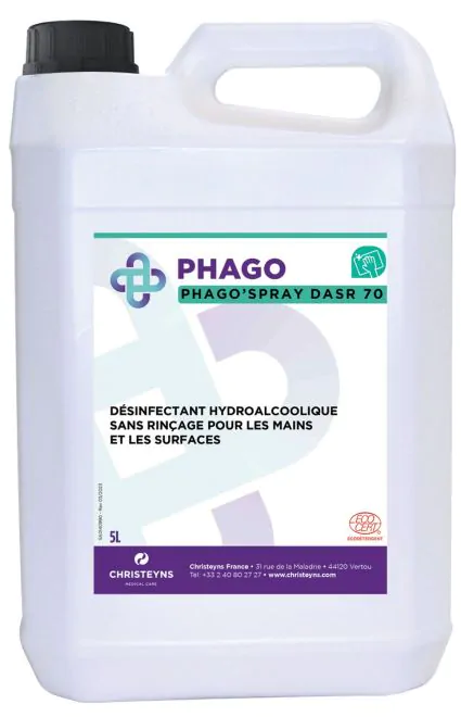Désinfectant hydroalcoolique sans rinçage pour les mains et les surfaces, large spectre antimicrobien dès 30 s, contact alimentaire, sans rinçage, sans trace, ni résidu au séchage