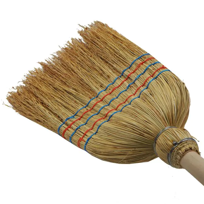 - Balais en paille de sorgho 5 fils, - Manche en bois et fil de fer galvanisé.- Ficelle en polypropylene.