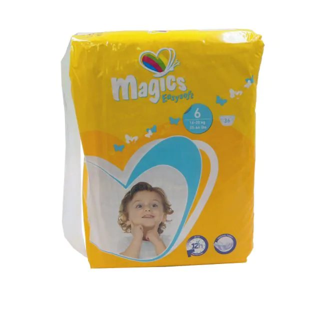- Produit sans pétrole, colorant, latex et parfum - Attaches extensibles et repositionnables - Protection contre les fuites grâce à la technologie des Magical Tubes® jusqu à 12h de protection garantie - Douces pour le confort et la protection de la peau de bébé - Elle s incurve automatiquement, s adaptant parfaitement à la morphologie - Taille 13 à 18kg - Absorption: 362 grammes - Emballage sachet recyclable - Fabrication européenne