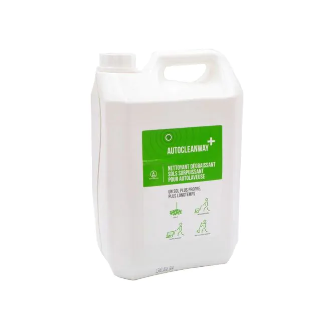 - AUTOCLEANWAY nettoie et dégraisse ef cacement tous les types de sols.- Il est idéal pour les supermarchés, halls, gares, aéroports, hôpitaux, etc.- AUTOCLEANWAY est formulé selon le procédé BIOSURF®, sélection de biosurfactants ultra-efficaces au fort pouvoir mouillant.- Ces biosurfactants permettent une diminution considérable de la consommation de produit tout en garantissant une excellente efficacité.- Son parfum frais diffuse une agréable odeur de propreté.- Grâce à sa formule enrichie en cires végétales naturelles, la brillance des sols est renforcée.- AUTOCLEANWAY conditionne les effluents en améliorant leur dégradation.A court terme, les machines sont préservées de l encrassement et des mauvaises odeurs.le temps de nettoyage est optimisé.- Avec une utilisation régulière, l impact environnemental du nettoyage est grandement réduit.