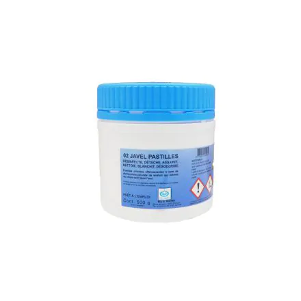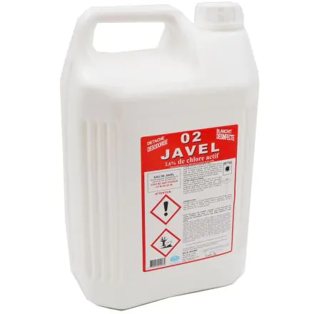- EAU DE JAVEL 9.6% nettoie ; désodorise ; blanchit et désinfecte.