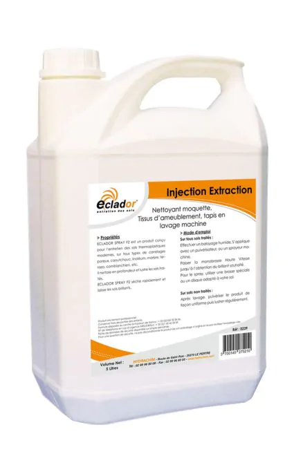 - Injection Extraction Moquette liquide est un produit d hygiène développé pour le nettoyage des moquettes, tissus d ameublement et tapis en lavage machine.- L Injection Extraction Moquette est un produit qui nettoie en profondeur les tapis, moquettes et tissus d ameublement.- Après séchage, il ne laisse aucun résidu dans la moquette.- Ceci permet donc de retarder de manière significative l encrassement.